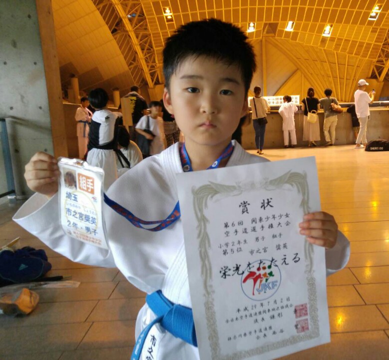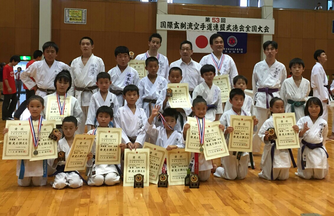 【形の部】小学3年女子 十時 美千 優 勝小学1年男子 武井 勇人 第3位小学2年男子 市之宮奨英 優 勝小学4年男子 今村 天力 準優勝 〃 浅見 達 敢闘賞小学5年男子 高野 璃生 優 勝一般男子有級 高野 亮 準優勝【組手の部】小学2年男子 市之宮奨英 第3位小学3年男子 佐治 光翔 敢闘賞小学4年男子 住田 耀大 準優勝
