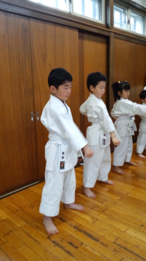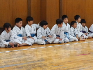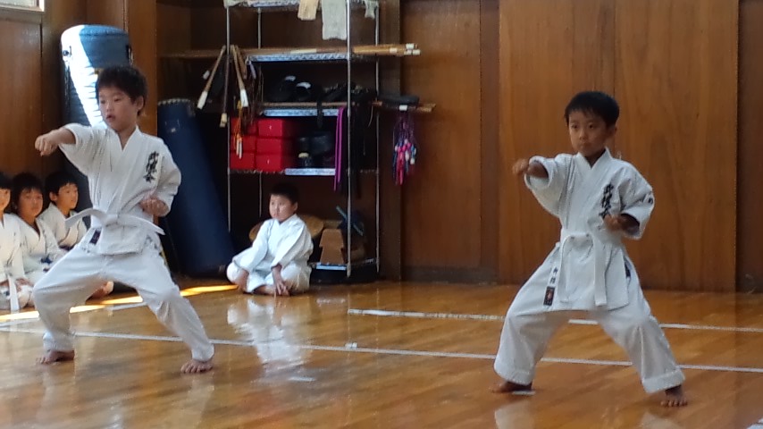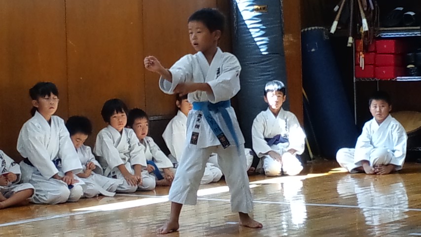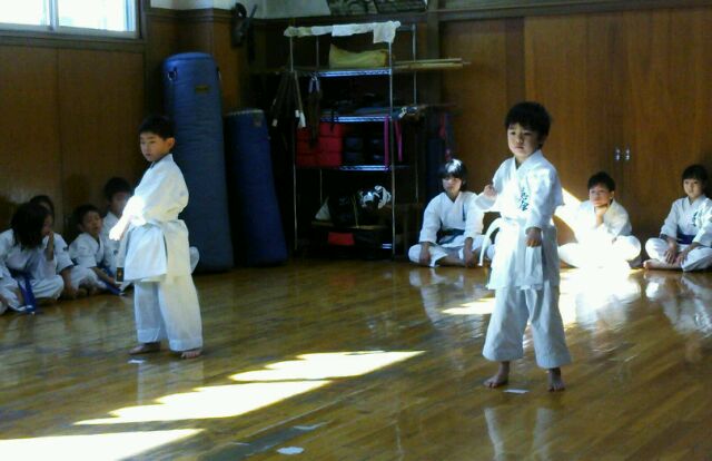 いつもより早めに子供達が(*^^*) 皆んなの気になる審査結果の発表があるからです。 一発合格した子、チョット思わしくなかった子も、それぞれに嬉しそうな顔をしているのが印象的でした。 昇級おめでとう! 質問が多い審査結果について説明しておきます。 《合格》審査科目の、全てをクリアした事です。 《仮合格》審査科目の内、一つ以上の種目が合格基準以下の場合です。 例・・その場突きが不合格、他の種目は合格の場合は仮合格となり、次回の審査でその場突きのみ審査を受け直しとなります。 《再講習》級ごとの審査科目の内、不合格となる程の基準でないもの。 道場練習において修正後、指導責任者が確認していれば合格となります。 帯について。 無級・・・・・・白帯 10級~9級・・青帯 8級~7級・・紫帯 6級~4級・・緑帯 3級~1級・・茶帯 初段~・・・・黒帯 今回、仮級の受審者で、とても高い評価を受けて合格した子がいました。 学校の試験のように細かい点数までは出ませんが、同じ種目の審査でも、それぞれ評価はつけられています。 皆んなに渡した審査結果に、自分の評価が記してあります。 合格したから良かった!ではなく、これからの練習でどこを直していけば良いのか、確認し直す事も大切です。 これから級が上がる毎に審査基準は厳しくなります。 空手は武道ですから、その級に求められる技の習熟度や、年齢・性別に合った突き・蹴り・力強さやスピード・決めが必要になってきます。 練習の中で教わった事だけをやるのではなく、どうしたら突き蹴りが強く出せるのか、早く動けるのかを自分で考え工夫する事も大切です。 そして、帯の色が変わると言う事は、技術が上がったと言うことだけではありません。 審査を受けた子達わかりますね? 志木の生徒達はとても良い態度で、挨拶返事も出来ていましたが、審査中、自分の番を待つ間の態度が悪い子が注意されていたと思います。 級が上がると言う事は、それらも含めて出来ると言う事です。 強さの中にも品格という事が、とても大切なのです。 級の上の者は、下の子達の模範となって教えられる位の気持ちが必要です。 志木っ子達やるからには、審査では満点合格、試合では優勝目指して頑張ろう! |