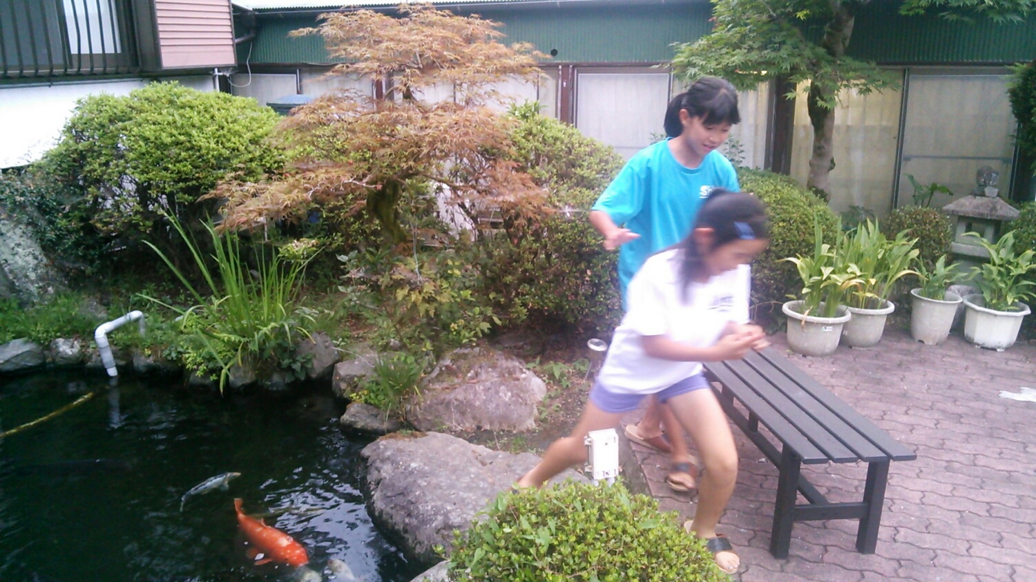 たが、無事到着しました。 そんな車中で! 先生、もう群馬県に入りましたか? 群馬県には行きません。 神奈川県です… 帰りはディズニーランド通りますか それは千葉県です(>_<)/~~ 楽しくも賑やかな車中でした。 人なっこい池の鯉に指を吸いつかれ、悲鳴をあげながら 逃げる女の子達 |